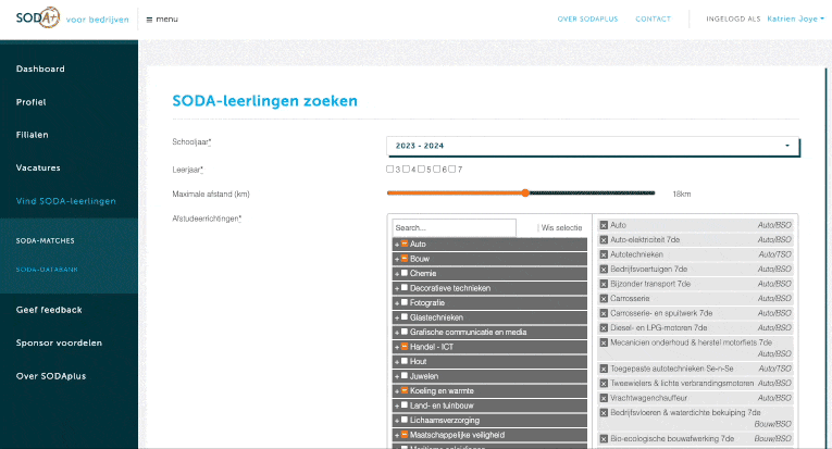 Zoek naar alle beschikbare contactgegevens van SODA-leerlingen in een door u bepaalde straal rondom uw bedrijf.